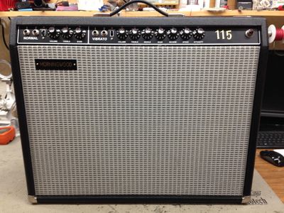 Possibly the most desirable blackface amplifier, the Vibroverb™ AB763 circuit, around 40 watts with 1-15" speaker, 2 channels with reverb and tremolo. This particular custom version has a Mid control in the 2nd channel unlike the original. Think Texas Blues, Rockabilly, Jazz, Country, more. Extremely pedal friendly, a great clean platform. Power transformers from Pacific Audio, Mercury Magnetics output transformer, over=spec'd choke, fiberglass circuit board and the highest quality components available.